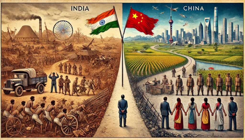 1940 और 1950 के दशक में भारत और चीन दोनों के पास एक जैसा आर्थिक ढांचा था। दोनों देशों की 70% से ज़्यादा आबादी खेती पर निर्भर थी। लेकिन चीन ने क्रांति के बाद Land Reforms को सबसे पहले लागू किया। वहां बड़े जमींदारों की जमीनें जब्त की गईं और किसानों में बांट दी गईं। इसका फायदा ये हुआ कि लाखों छोटे किसान अपनी जमीन के मालिक बन गए, और उन्होंने मेहनत से उत्पादन बढ़ाया। भारत में भी भूमि सुधार की बातें हुईं, लेकिन ज़मींदारों के राजनीतिक प्रभाव ने इसे कभी सही से होने नहीं दिया।