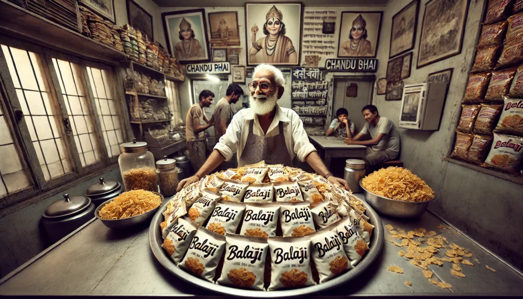 फिर आया वह पल, जब उन्होंने अपने ब्रांड का नाम चुना—Balaji Wafers। नाम उन्होंने हनुमान जी से प्रेरित होकर रखा था, ताकि शुरुआत भी शुभ हो और सफर भी मजबूत हो। शुरुआत में उन्होंने सिर्फ अपने सिनेमा की कैंटीन में बालाजी के पैकेट बेचे। लेकिन जल्द ही उन्होंने राजकोट की छोटी-छोटी दुकानों में भी चिप्स रखना शुरू किया। साइकिल लेकर दुकानदारों तक जाते। कई दुकानदार कहते—“अरे भाई, तू कल भी आया था। तेरा माल नहीं चलता, आगे बढ़।” लेकिन चंदुभाई सिर्फ मुस्कुराकर अगले दिन फिर पहुंच जाते। शायद उन्हें पता था कि consistency ही destiny बदलती है।