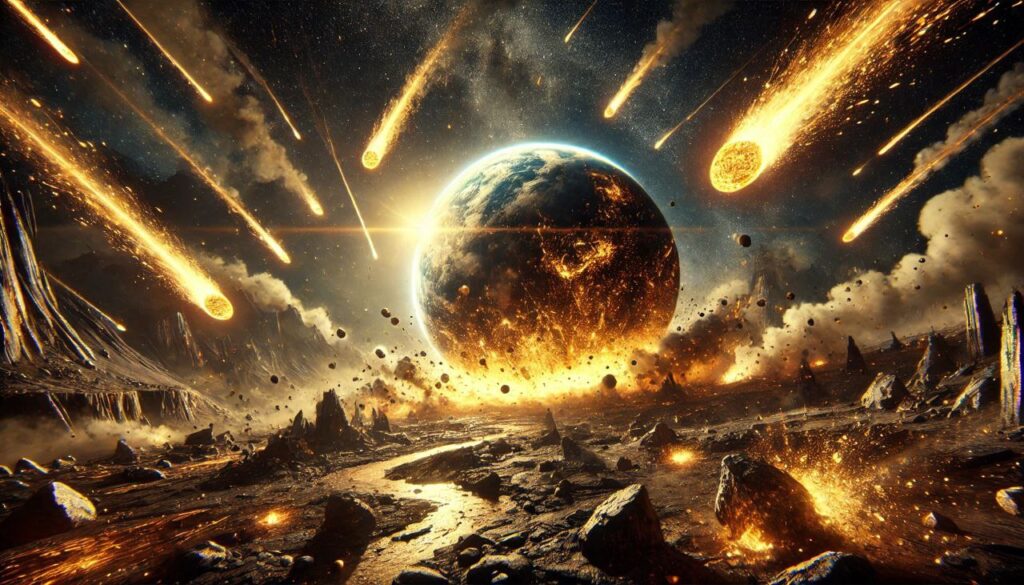करीब 4 अरब साल पहले की बात है। पृथ्वी अभी युवा थी। इसकी सतह पर आग का दरिया बह रहा था, पहाड़ बन रहे थे, महासागर आकार ले रहे थे। तभी ब्रह्मांड के किसी कोने से उल्कापिंडों की बारिश हुई — इतनी घनी, कि धरती की परतें हिल गईं। इन उल्कापिंडों के साथ आए थे वो भारी तत्व जो किसी तारे की मौत के बाद बने थे — सोना, प्लैटिनम, और यूरेनियम जैसे दुर्लभ तत्व।