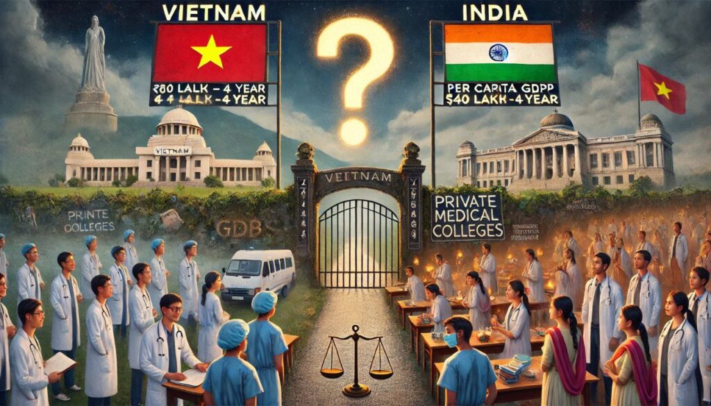 सवाल उठता है कि आखिर क्यों भारत में मेडिकल कॉलेज खोलने और चलाने की लागत इतनी ज़्यादा बताई जाती है? क्या यह सिर्फ इन्फ्रास्ट्रक्चर या स्टाफ की सैलरी का मामला है? या फिर यह एक सुनियोजित उद्योग बन गया है, जहां शिक्षा नहीं बल्कि मुनाफा प्राथमिकता है? अगर वियतनाम जैसी इकॉनमी कम फीस में गुणवत्तापूर्ण शिक्षा दे सकती है, तो भारत क्यों नहीं?